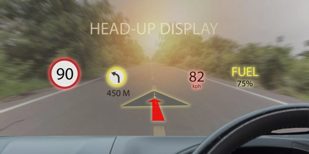 Fart og navigation projiceres direkte i forruden. Du slipper for at kigge ned på instrumentbrættet. Det skaber mere ro og bedre fokus i trafikken.